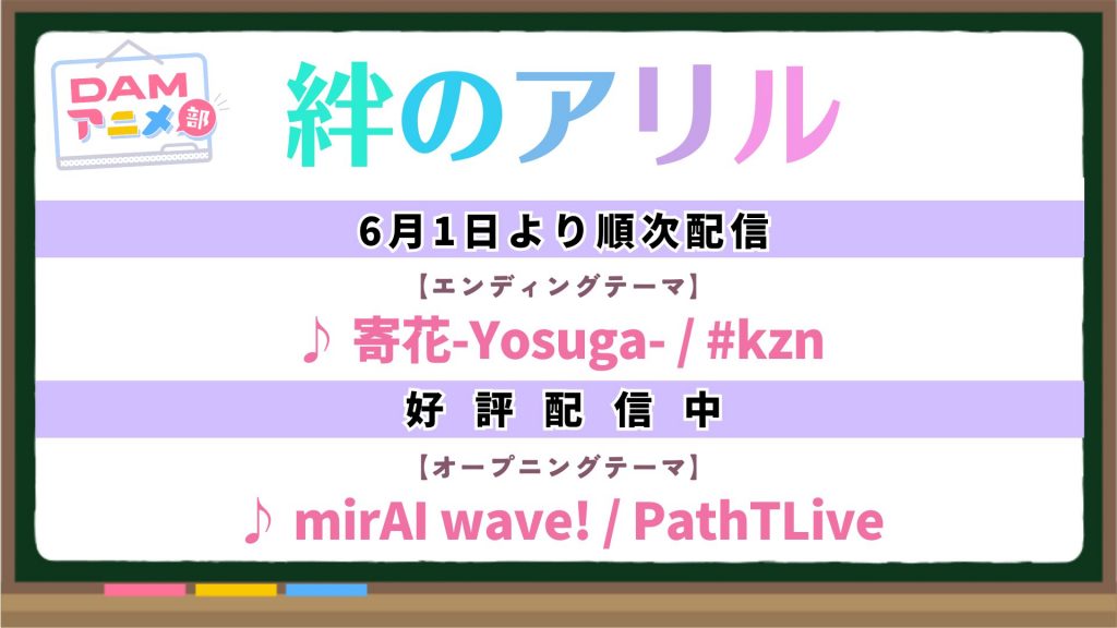 カラオケ「DAM」より、TVアニメ「絆のアリル」エンディングテーマが順次配信されます!