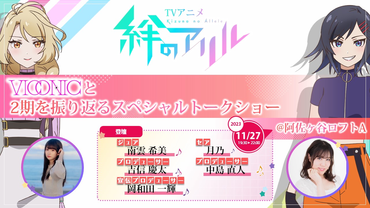 11/13(月) 深夜3時20分放送の「あにレコTV」に絆のアリルキャスト出演!